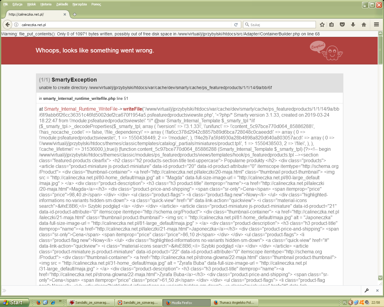 Aureliano Posted March 24, 2019 Share Posted March 24, 2019 Pojawił się niespodziewanie problem. Zamiast sklepu - raport ( w załączeniu ) To samo z próbą otworzenia admina. Link to comment Share on other sites More sharing options...
