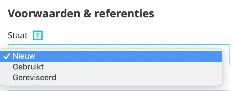 I would like to adjust or supplement the Conditions & references and the conditions "New", "Used" and "Refurbished". (under the tab Options at product).