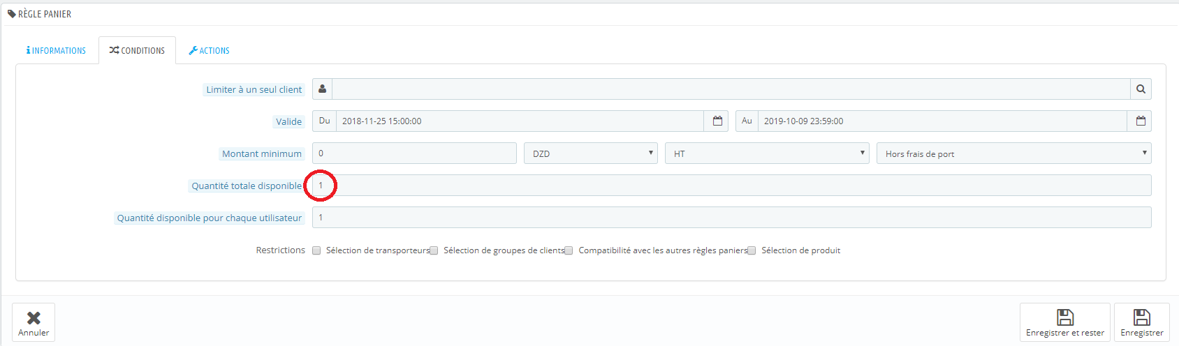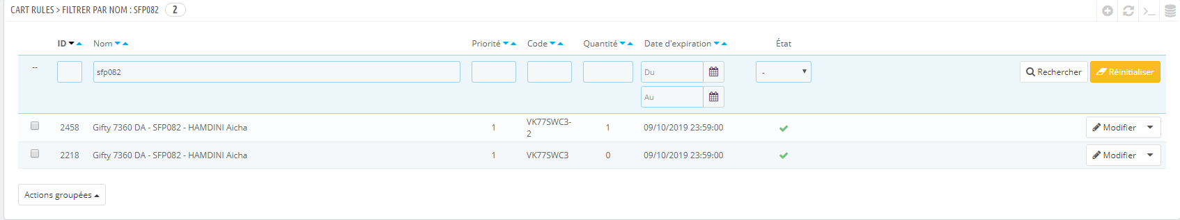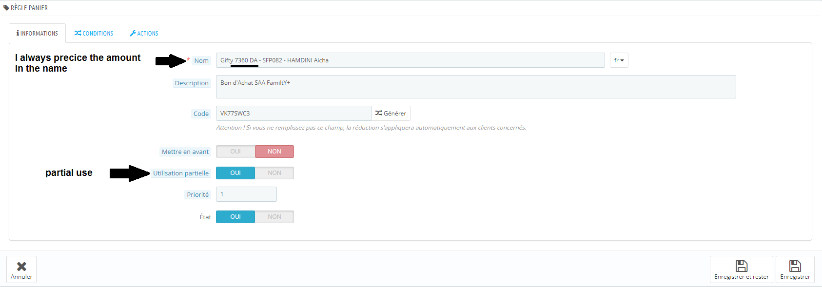 Saraaa Posted March 26, 2019 Share Posted March 26, 2019 Hello, I have prestashop 1.6.1.23. I have created some cart rules for my clients i choosed diffrent amounts and the same options for all the clients see in attached when the clients used the cart rules in their orders, something went wrong sometimes when the cart rule value is smaller than the total product price in the order detail, a second voucher is created containing the difrence between the discount amount and the the total product amount. I have been testing since days, I can't understand how does it fuction. Any help please. Link to comment Share on other sites More sharing options...