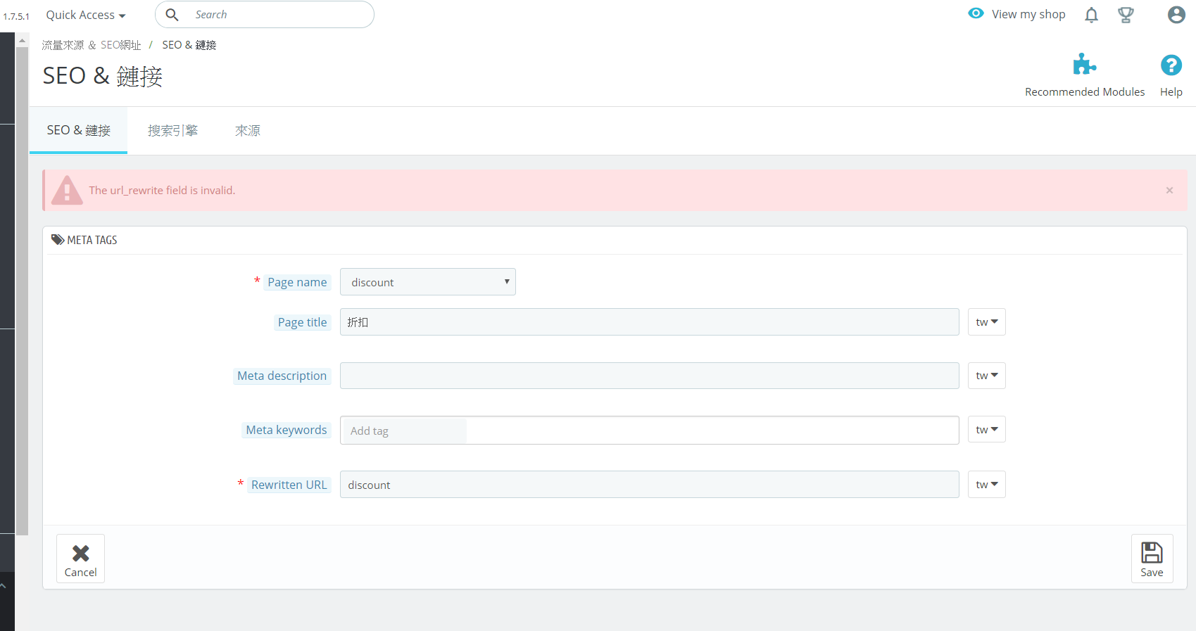 ricebird Posted March 26, 2019 Share Posted March 26, 2019 ver 1.7.5.1 The url_rewrite field is invalid Please help. Link to comment Share on other sites More sharing options...