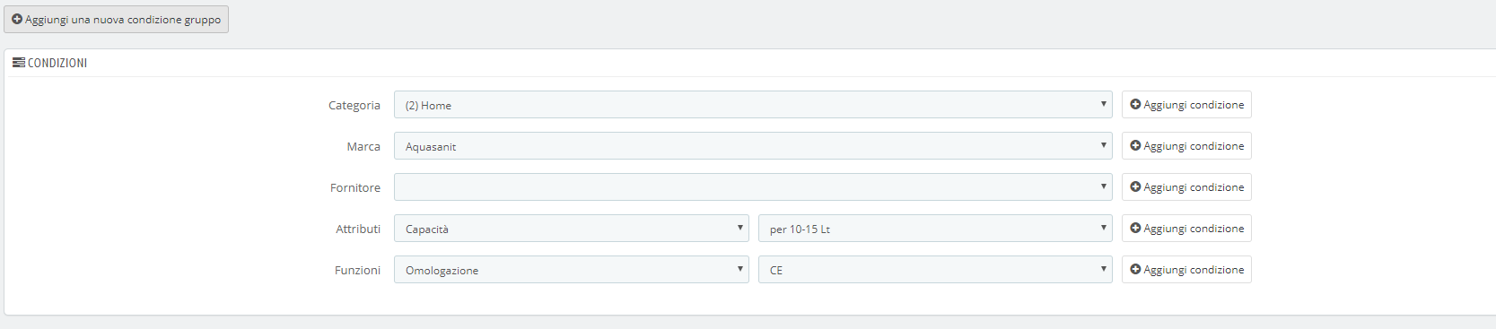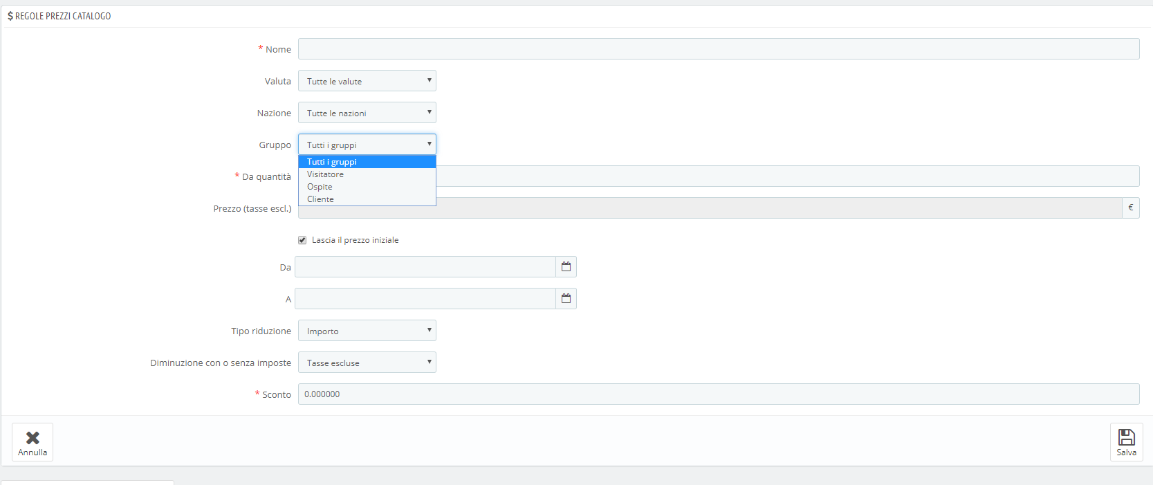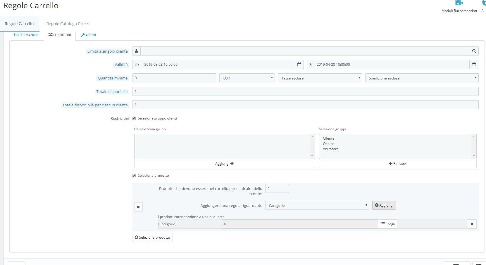 abbiamo creato una regola da applicare solo ad un gruppo utenti la quale consiste in uno sconto del 10%, purtroppo lo sconto lo applica solo sugli attributi, non sulle categorie, quindi risulta ingestibile, anche applicare uno sconto direttamente dal gruppo utenti non è la soluzione ottimale che staremmo cercando, poichè abbiamo solo alcuni prodotti che vorremmo scontare.