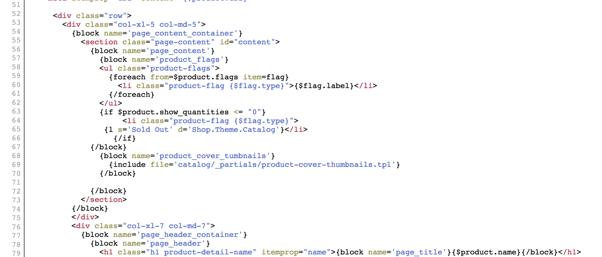 Sito Lab Posted March 30, 2019 Share Posted March 30, 2019 ok prova a modificarlo in questo modo da (originale come era) 1 ora fa, Sito Lab dice: {block name='product_flags'} <ul class="product-flags"> {foreach from=$product.flags item=flag} <li class="product-flag {$flag.type}">{$flag.label}</li> {/foreach} </ul> {/block} a questo {block name='product_flags'} <ul class="product-flags"> {foreach from=$product.flags item=flag} <li class="product-flag {$flag.type}">{$flag.label}</li> {/foreach} </ul> {if $product.show_quantities <= "0"} <li class="product-flag {$flag.type}"> {l s='Sold Out' d='Shop.Theme.Catalog'}</li> {/if} {/block} Link to comment Share on other sites More sharing options...