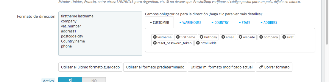 mireiabm Posted March 29, 2019 Share Posted March 29, 2019 35 minutes ago, juanrojas said: no hay nada que se llame internacional Hola Juan, La sección de internacional (Versión 1.7), se encuentra en la barra lateral izquierda del Backoffice de Prestashop. Selecciona "Internacional" > Ubicaciones geográficas > Países. Dentro de Países encontrarás lo que necesitas, y podrás configurar todos esos campos como desees: Si tienes otra versión de Prestashop, coméntamelo y te indico como llegar. Saludos Link to comment Share on other sites More sharing options...