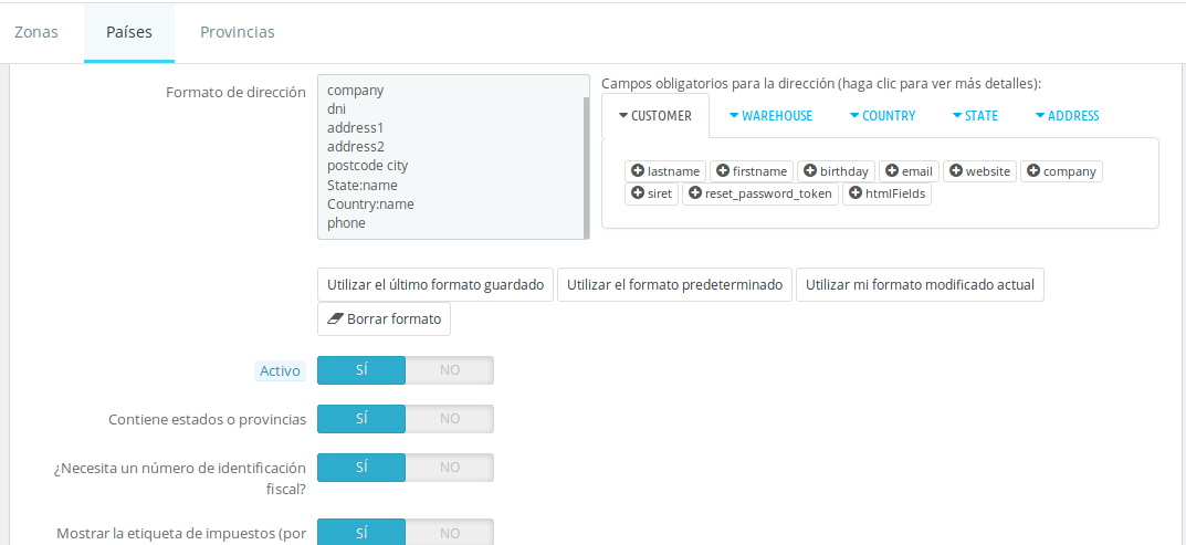 MICROEDET Posted March 31, 2019 Author Share Posted March 31, 2019 Muchas gracias por tu ayuda te mando dos capturas de configuracion para españa, una en la que se ve que es requerido dni, y otro en la que no aparece dni en direcciones para ponerla como obligatoria Link to comment Share on other sites More sharing options...