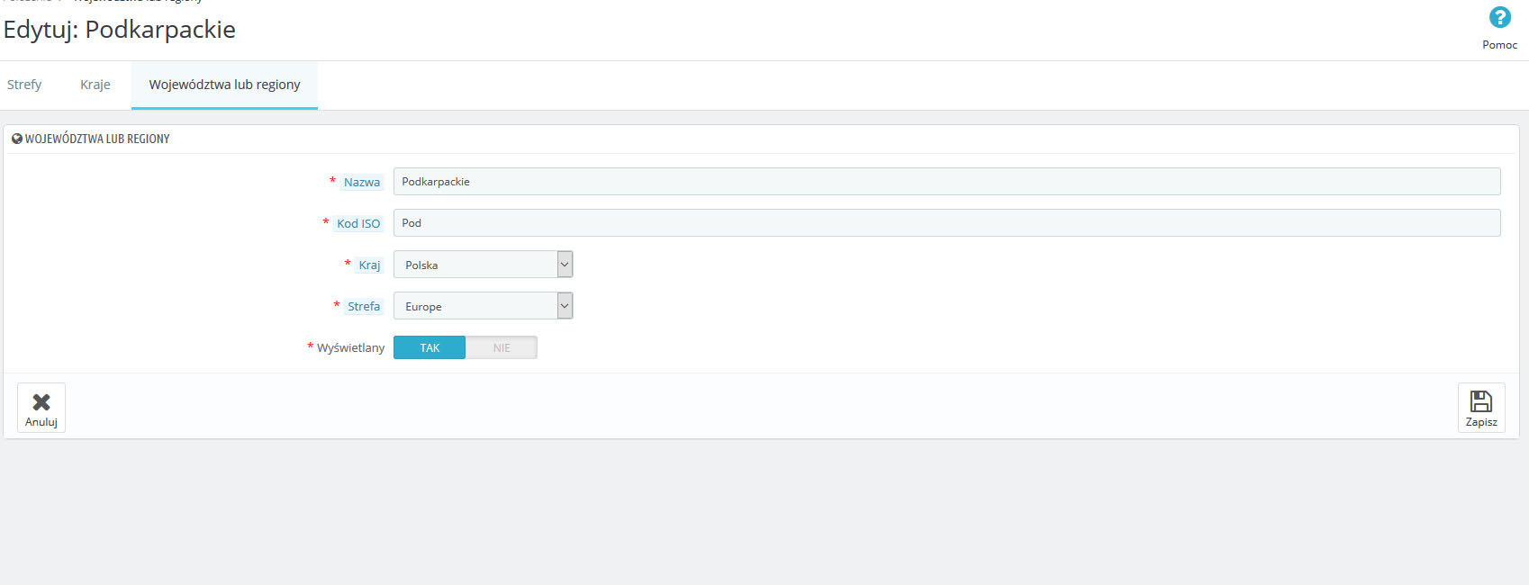 1 sztuka ---> wysyłka do 1 z 16 województw ---> osobna cena dla każdego województwa