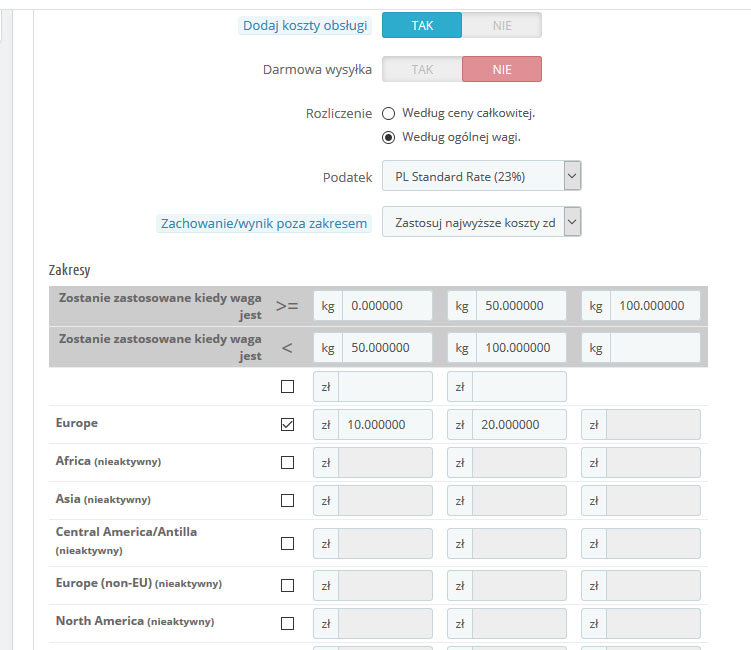 Klient sprzedaje ciężkie produkty i chce aby zależnie od ilości zakupionych produktów oraz miejsca dostawy (województwo) cena była inna np.: