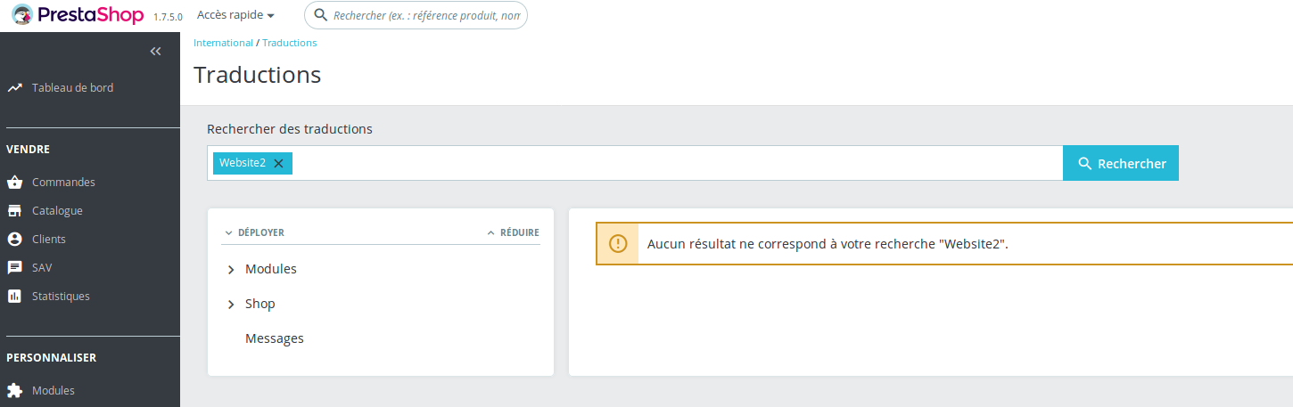 Klemart3D Posted April 9, 2019 Author Share Posted April 9, 2019 (edited) C'est bien la première chose que j'ai essayé Mais seuls les champs officiellement traduits depuis Crowdin apparaissent dans les fichiers de trad .xlf du domaine correspondant et donc en BO, pas les champs custom. Si j'ai supprimé le domaine dans l'exemple, c'est que cela s'est avéré utile pour certains. En fait il s'agit d'un bug non résolu de PrestShop : https://github.com/PrestaShop/PrestaShop/issues/12300 Un workaraound a été proposé : Créer les champs à traduire directement en base dans la table ps_translations (en retirant les points du domaine, par exemple "Admin.Actions" devient "AdminAction") Supprimer les fichiers de cache du dossier /var/cache/<env>/translations Recharger la page des traductions, elles doivent apparaître traduites Donc faute de mieux, c'est comme ça que je fais pour l'instant... Edited April 9, 2019 by Klemart3D (see edit history) Link to comment Share on other sites More sharing options...