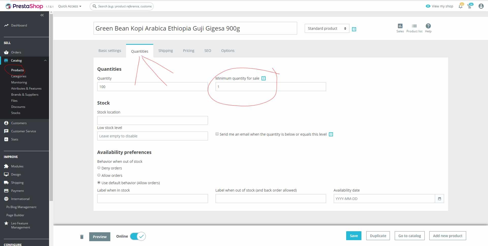 Mycoffee.shop Posted April 17, 2019 Share Posted April 17, 2019 Unter Produkte 2. Reiter rechts oben Minimum quantity for sale Link to comment Share on other sites More sharing options...
