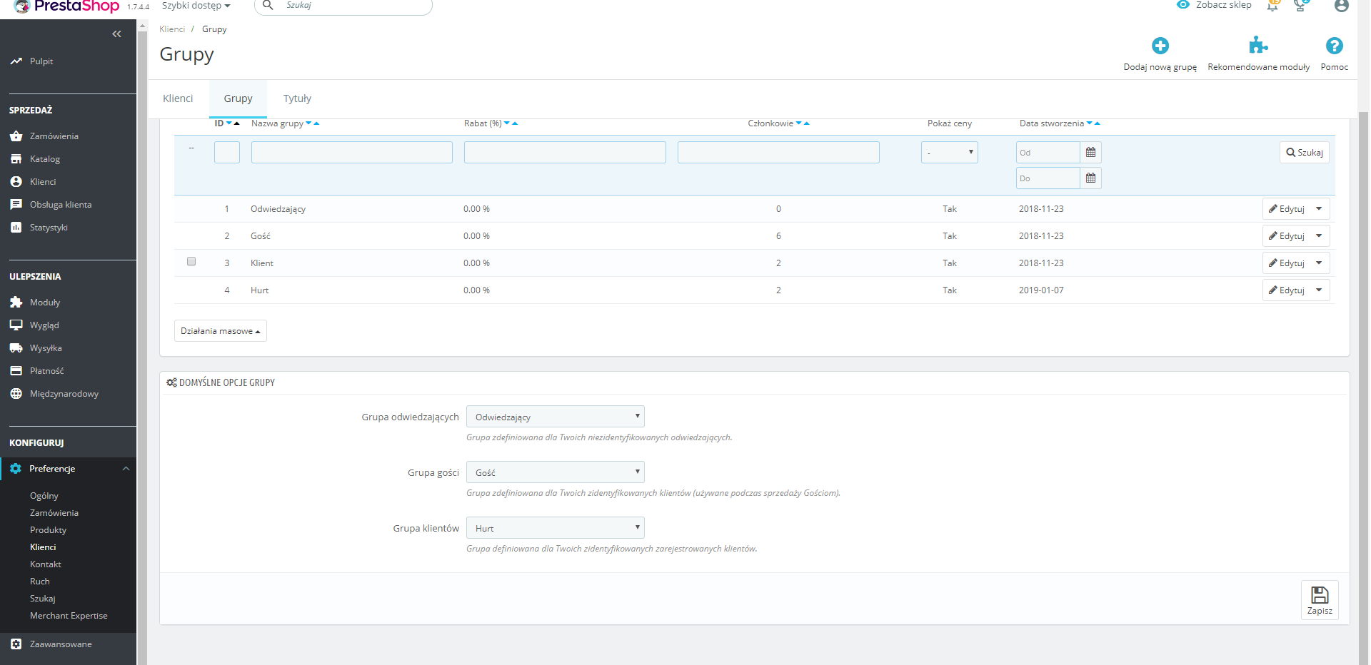 Witam, czy w ustawieniach presty 1.7 da się zrobić tak aby po zalogowaniu klient z automatu dostał inną domyślną grupę?