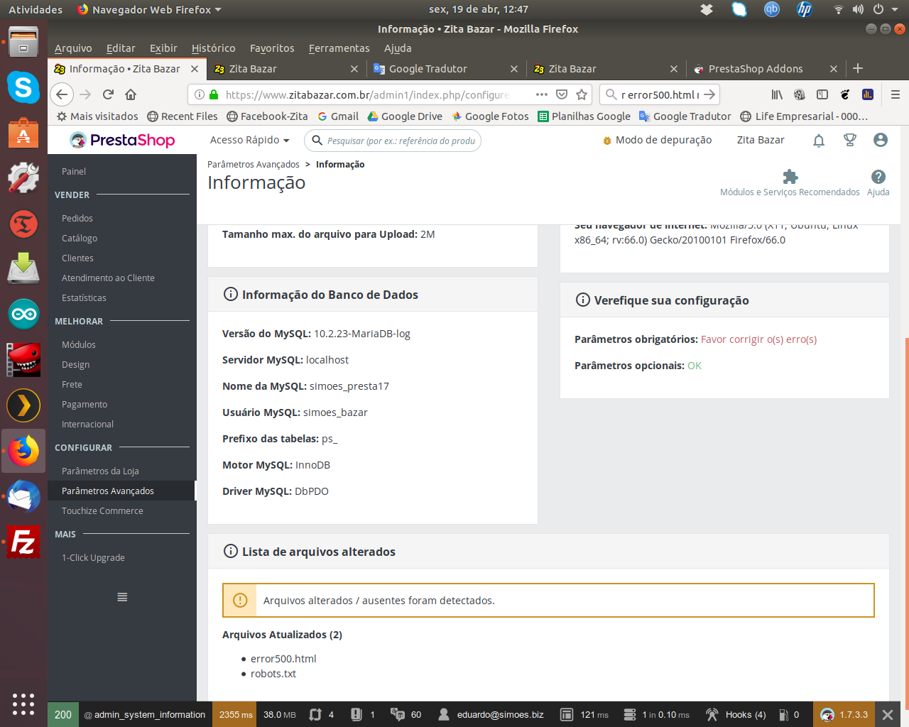 Simoes Posted April 19, 2019 Share Posted April 19, 2019 Houve um a atualização no "1-Click Upgrade" então acabei descobrindo alguns erros na pagina de Informações segue o print, quais os erros? os arquivos faltando, não estão faltando, o robots.txt criei um novo mas não adiantou, podem me ajudar? Link to comment Share on other sites More sharing options...