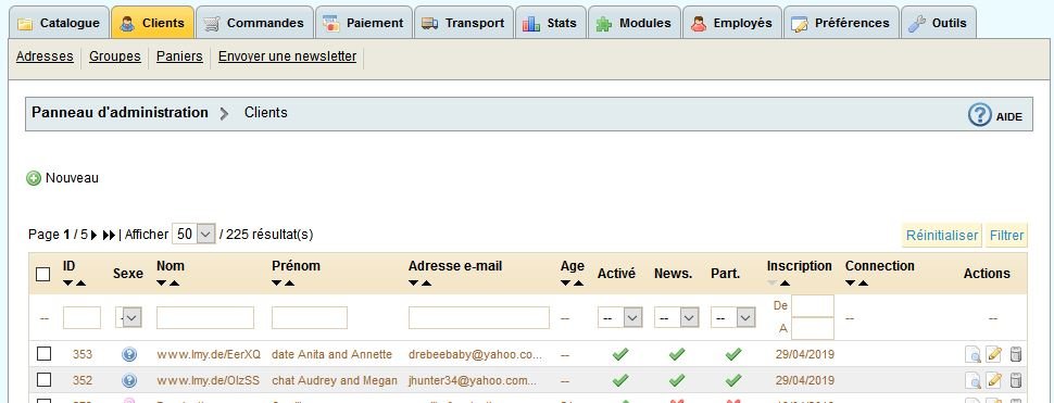 doekia Posted May 2, 2019 Author Share Posted May 2, 2019 il y a 5 minutes, loulou66 a dit : Coucou Merci @doekia et @Eolia pour ce fix comme je vois qu'il y en a qui galère à mettre le fix en place vous trouverez sur mon site un petit module gratuit il suffit juste de l'installer puis de supprimer les clients SPAM pensez à vérifier que les surcharges ne soient pas désactiver dans le menu performances. J'ai rajouter dans le check le point(.) si dans le future il spam avec des url du genre "domain.com" sans le http devant Tester sur des Prestashop 1.5.6.2 / 1.6.1.23 / 1.7.4.2 @++ Loulou66 Attention de ne pas avoir bloqué l'inscription de Georges W. Bush Jr. 1 Link to comment Share on other sites More sharing options...