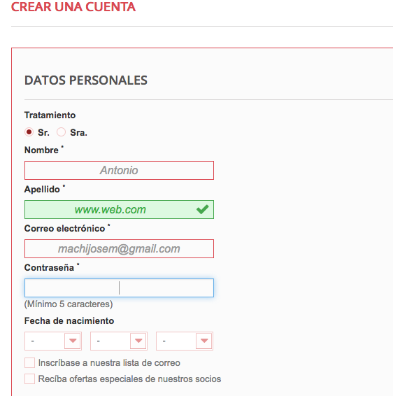 @toneig Posted April 25, 2019 Share Posted April 25, 2019 Ahora si modificas el campo apellido y pones un apellido, lo valida correctamente, es un inmenso alivio ver que funciona correctamente, muchísimas gracias por el aporte, ahora voy a modificar otras webs que tienen el mismo problema. Link to comment Share on other sites More sharing options...