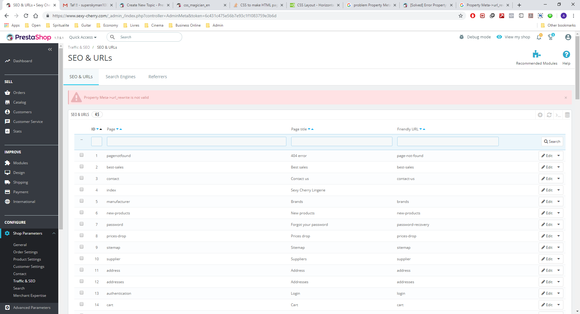 superskyman100 Posted April 26, 2019 Share Posted April 26, 2019 (edited) PS 1.7.5.1 www.sexy-cherry.com browser login & password : prod Hello guys, I cannot rewrite the URLs of my pages, it makes an error "Property Meta->url_rewrite is not valid" I tried: - desactivate modules, theme .... - forced "mod_rewrite" activation from Apache It changed nothing, still have the error Any idea ? Thanks a lot Edited January 24, 2020 by superskyman100 (see edit history) Link to comment Share on other sites More sharing options...