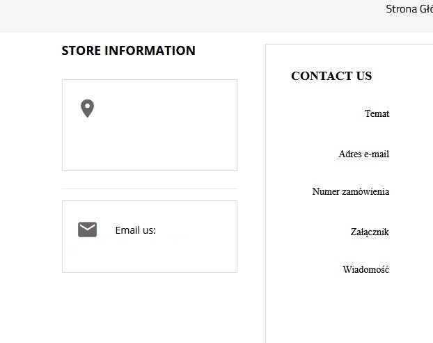 0 Dejvid Posted April 29, 2019 Author Share Posted April 29, 2019 Może komuś się przyda... (dla motywu wt_choicemarket) 'Contact us' możemy zmienić na sztywno na 'Kontakt' w pliku contactform.tpl - ścieżka /themes/moj-motyw/modules/contactform/views/templates/widget/contactform.tpl <div class="form-group row"> <div class="col-md-9 col-md-offset-3"> <h3>{l s='Kontakt' d='Shop.Theme'}</h3> </div> </div> 'STORE INFORMATION' i 'Email us' edytujemy w dwóch plikach: ps_contactinfo.tpl i ps_contactinfo-rich.tpl - ścieżka: /themes/moj-motyw/modules/ps_contactinfo/ 'SIGN UP FOR OUR NEWSLETTER' edytujemy w pliku ps_emailsubscription.tpl /themes/moj-motyw/modules/ps_emailsubscription/views/templates/hook/ Link to comment Share on other sites More sharing options...