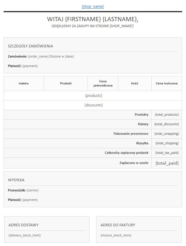 Do tej pory wszystko działało prawidłowo, nie były wgrywane aktualizacje oraz zmieniane szablony wiadomości e-mail wszystkie są standardowe. Dodam tylko, że dane podstawiane pod generowany PDF zamówienia, wstawiają się namolnie problem zaobserwowałem tylko na poziomie maila.