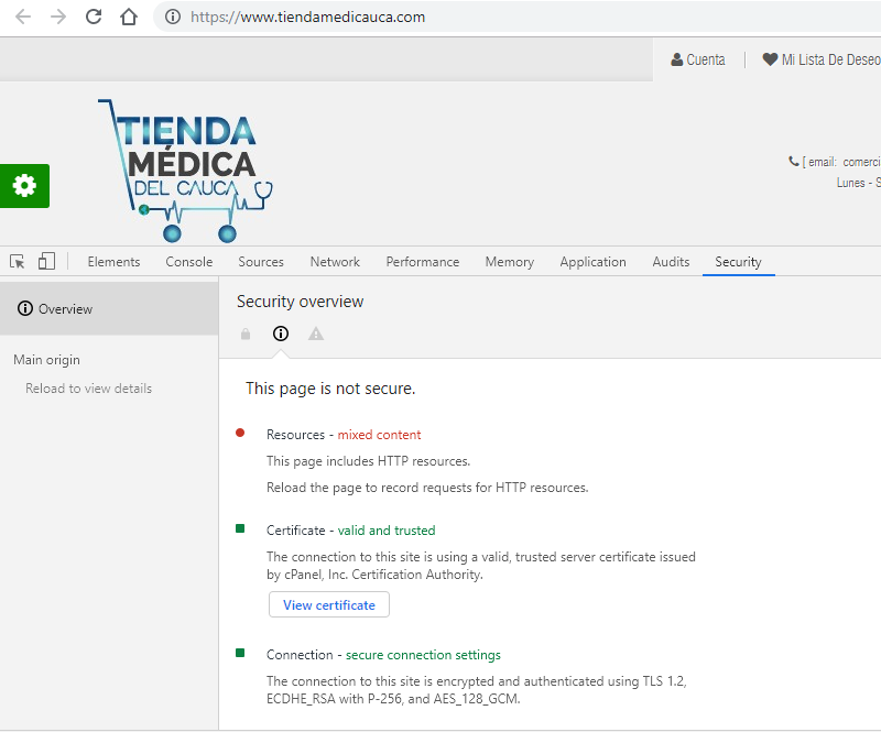 Liss Bolaños Posted May 7, 2019 Share Posted May 7, 2019 Buenos días, tengo un problema que he estado investigando pero lastimosamente no he podido encontrar la solución. Mi proveedor de hosting me brinda un ssl gratuito, ellos me informan que ya fue activado y en mi sitio aparece el https pero no el candado en color verde, aparece un ciculo con una i de Consulta la información del sitio Información o no seguro. he leído y realizado cambios en mi .htacces he agregado estas lineas de código pero con ninguna funciona. #RewriteCond %{REQUEST_URI} !^/[0-9]+\..+\.cpaneldcv$ #RewriteCond %{REQUEST_URI} !^/\.well-known/pki-validation/[A-F0-9]{32}\.txt(?:\ Comodo\ DCV)?$ #RewriteEngine On #RewriteCond %{HTTP_HOST} ^tiendamedicauca\.com [NC] #RewriteCond %{SERVER_PORT} 80 #RewriteRule ^(.*)$ https://www.tiendamedicauca.com/$1 [R=301,L] -- RewriteEngine On RewriteCond %{HTTPS} off RewriteRule ^(.*)$ https://%{HTTP_HOST}%{REQUEST_URI} [L,R=301] y se sigue mostrando de la misma forma, adjunto una imagen donde se ve el circulo con la i en el dominio. Espero que por favor me puedan ayudar, muchas gracias. Link to comment Share on other sites More sharing options...