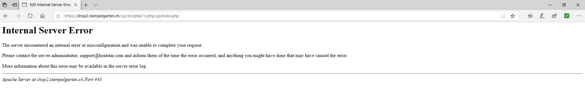 stempelgarten Posted May 10, 2019 Author Share Posted May 10, 2019 Nein, auch auf dem PC. Arbeite ja meistens vom PC aus. Und auch auf dem PC sind die Caches etc. der Browser geleert. Trotzdem geht es nur mit Chrome. Weshalb das Modul zur Rechtssicherheit nickt mehr auffindbar ist, ist mir ein Rätsel. Denn in meinem Shop hatte ich es ja heute auch gefunden. Nach dem Deaktivieren per FTP, da der Shop nach dessen Installation den Shopmanager nicht mehr auftärufeb konnte, finde ich es nicht mehr. Hast du dir das Error Log angesehen? Timeouts sind drin und dann was von Apple Bildern. Also die werden nirgends verwendet und würden auch nie verwendet. Ist ja ein frischer Shop in neuem Verzeichnis auf dem Server. Das mit dem cgi bin, php71... steht in den htaccess Dateien. Also denke ich, dort muss was falsch sein und daher darauf umleiten. Woher sollte diese URL auch sonst kommen. Link to comment Share on other sites More sharing options...