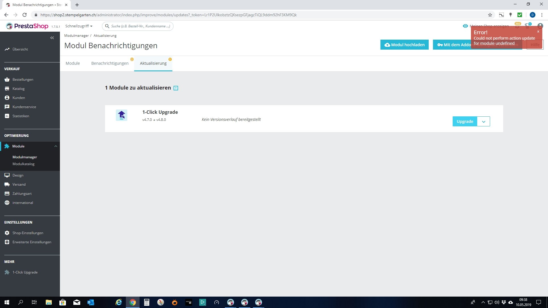 stempelgarten Posted May 10, 2019 Author Share Posted May 10, 2019 Jetzt konnte das Modul Rechtssicherheit installiert werden. Dann wollte ich nochmal in den Modulmanager um das Upgrade des 1-Click durchzuführen und erhielt folgende Meldung. Also was ist das falsch konfiguriert? "Nur" ein Timeout? So kann ich dem Hoster nichts sagen. Der schiebt es immer auf Prestashop und ich soll mich an einen Exeprten dafür wenden. Ihr seit die Experten. Wen sollte ich sonst kontaktieren. Bis jetzt lag es immer nur am Hoster. Link to comment Share on other sites More sharing options...
