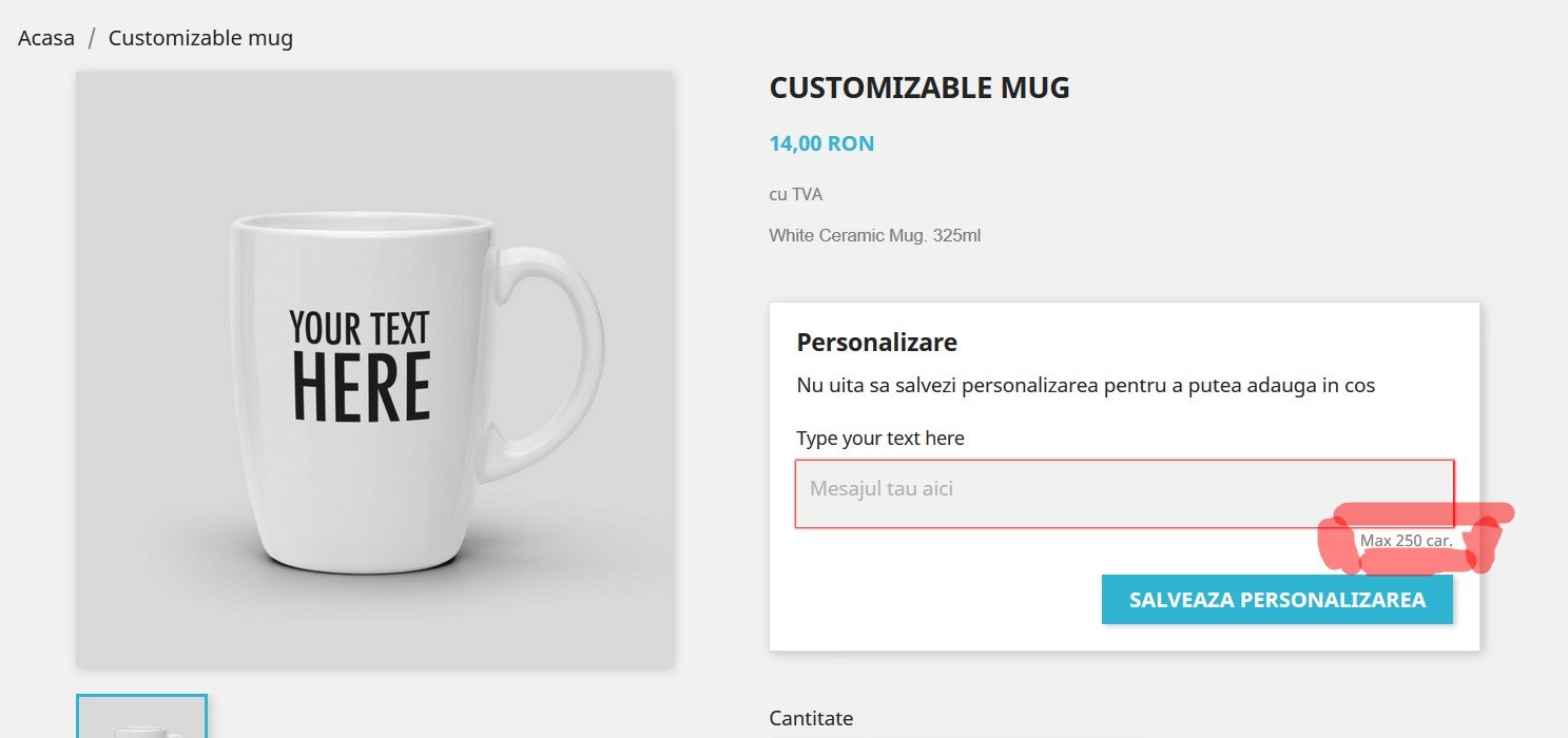 BroderiiTraditionale Posted May 11, 2019 Share Posted May 11, 2019 Hi! I have 1.7.5 prestashop version. I would like to be able to write more than 250 letters in this form. Link to comment Share on other sites More sharing options...