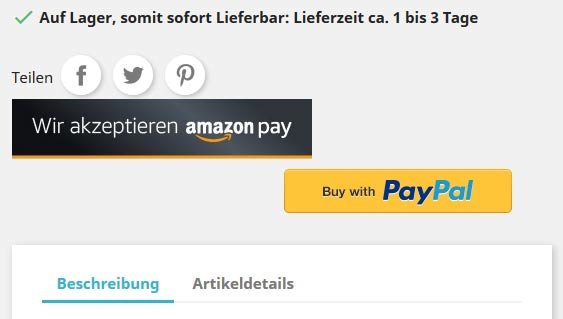 bgbruehl Posted May 13, 2019 Share Posted May 13, 2019 Hallo, wie schon im Titel erwähnt, habe ich in meinem Shop die zwei Zahlungsdienste Amazon Pay und Paypal im Shop, man kann ja diese in der Produktbeschreibung anzeigen lassen, was ich auch gemacht habe. Nun ist das Problem dass der Amazon Pay Banner größer ist wie der von PayPal und zudem auch noch nicht untereinander sind, siehe Bild Was muß ich machen dass diese schön gleichmäßig und mittig untereinander dargestellt werden? Danke für eure Hilfe. Meine Shop Version: 1.7.4.2 Link to comment Share on other sites More sharing options...