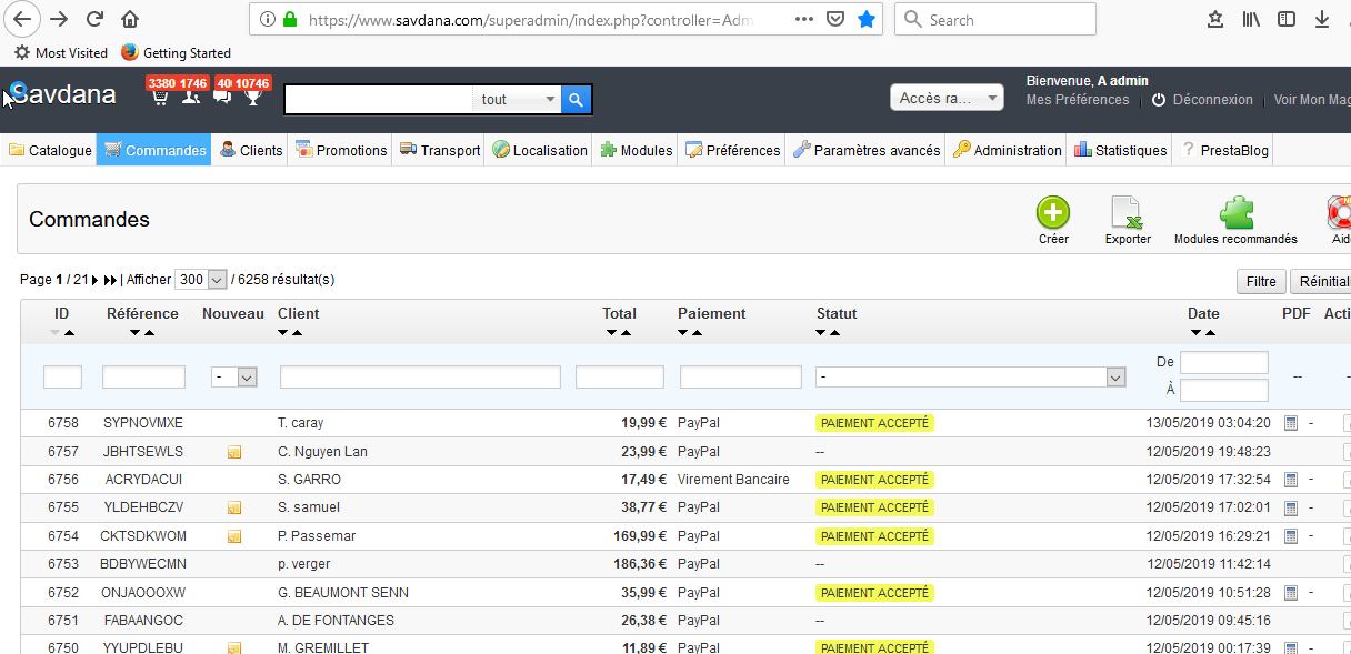 hurray Posted May 14, 2019 Share Posted May 14, 2019 Bonjour, Depuis quelques semaines, les statuts de mes commandes sont vides. Ci-joint l'image. J'ai prestashop 1.5.6.2. Au début je pensais que le problème venait du module Paypal, mais cela arrive même pour des commandes passées avec le paiement par virement. Pouvez-vous m'aider a résoudre ce problème s'il vous plaît? Merci Link to comment Share on other sites More sharing options...