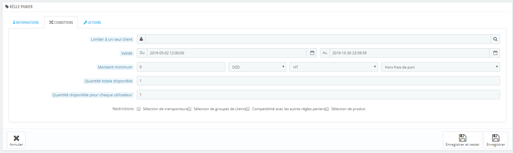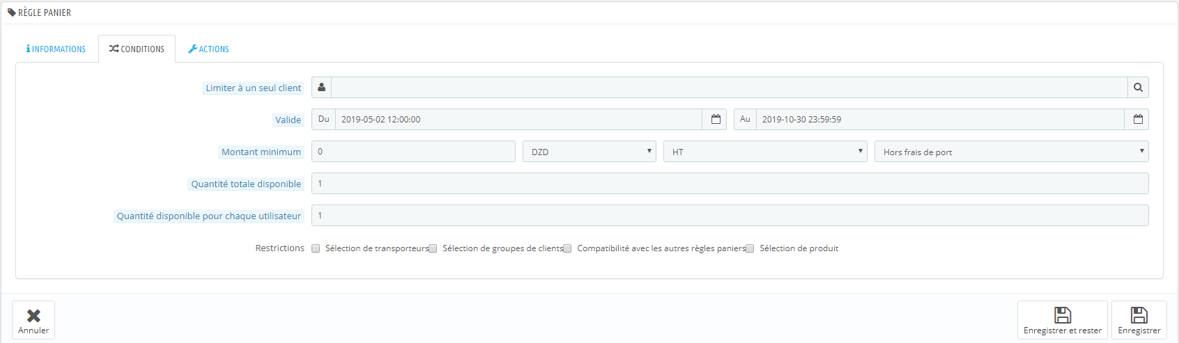 Saraaa Posted May 14, 2019 Share Posted May 14, 2019 (edited) Hello , So I did ask before about this problem I'm having with cart rule Now I am a bit more aware in wich case the problem is occuring My problem is that I am creating cart rules for a big group of people each one have one cart rule that can be used partially, with free shipping option, the cart rule value is an amount with tax. And when a customer buy products from my shop and use the cart rule, so the problem accures when the cart rule has the exact value of the total products in the order what happens is that when i go to the order in the BO I find the reduction amount but there is no information that shows which cart rule was used. in the Data Base the reduction amount exist in the table ps_orders but there is no line of this order in the table ps_order_cart_rule and the cart rule can be always used because no update happend to the table ps_cart_rule. I want to know how cart rule works and how can I fix it, Pleaseeee??? PS: I attached the screenshots of a test I did my self I have two prestashop 1.6.1.6 and 1.6.1.23 and the probleme is acuring in both Edited May 15, 2019 by Saraaa (see edit history) Link to comment Share on other sites More sharing options...