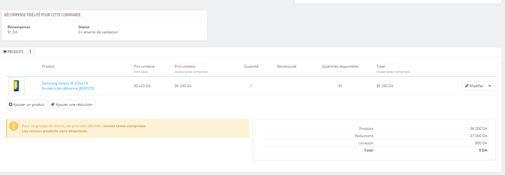 Solver Posted May 15, 2019 Share Posted May 15, 2019 Hello, Salamo 3likom This problem due to the $values['tax_incl'] contain also shipping value, so we must decrease the shipping value Prestashop => classes => PaymentModule.php => in if statement ligne 533 : change && $values['tax_incl'] > ($order->total_products_wt - $total_reduction_value_ti) && to && ($values['tax_incl']-$order->total_shipping_tax_incl) > ($order->total_products_wt - $total_reduction_value_ti) && Enjoy 😄 1 Link to comment Share on other sites More sharing options...