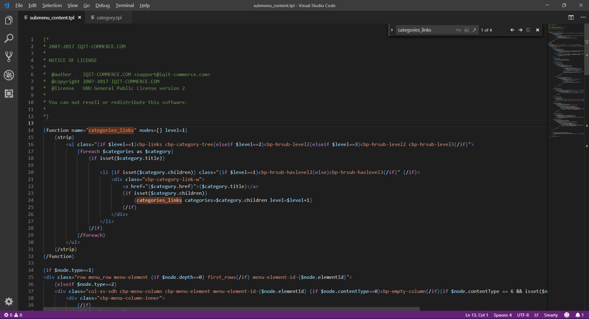 Je suis sous prestashop 1.7.4, version php 7.0 et je cherche à modifier le module mégamenu iqitmegamenu (si quelqu'un aurait une idée ou pourrait me guider ce serait chouette, pour l'instant je fais des tests pour voir où cela se passe, je vais modifier le code directement dans la fonction, seulement, il me faudrait savoir ce que je pourrais faire pour voir si j'ai des produits dans une catégorie ou non ??