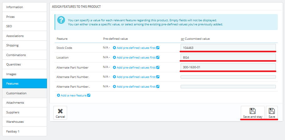 Insignia1986 Posted May 15, 2019 Share Posted May 15, 2019 (edited) As shown in my attachment, we are using one of the Features boxes to show Stock Code which is the Product ID (assigned by Prestashop). This number is generated by the system when I enter a new product, however it doesn't show anywhere on screen until I go back into the Product Catalog. Meaning it is necessary to go back into the listing to add this after creating it. Is it possible to automatically populate this field with the relevant Product ID when the product is saved? My preference is something I can add into the predefined values, as I don't have access to the SQL, however if that is the only option I can possibly get the admin to have a look into it. (please keep in mind that my admin has limited SQL knowledge as well). Edited May 16, 2019 by Insignia1986 (see edit history) Link to comment Share on other sites More sharing options...