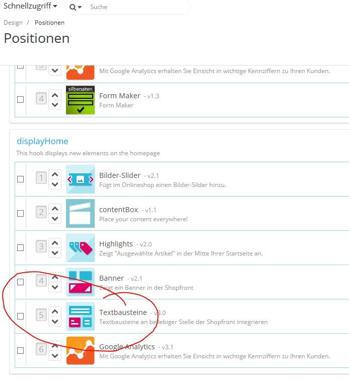 Kocourek Posted May 16, 2019 Share Posted May 16, 2019 Hallo Mitleidende, ich gehe schon bald mal die Wand hoch. Im standard Theme ist folgendes Modul integriert: Textbausteine v3.0.0 von PrestaShop (siehe Bild 1) Dort kann man über Einstellungen seinen individuellen CMS Block erstellen und danach auch unter "Design/Positionen" verschieben (siehe Bild 2). Wie kann ich jedoch in diesem Modul einen neuen/zusätzlichen CMS Block erstellen? Das müsste doch gehen, denn es wird überall in diesem Modul klar im Plural gesprochen. Die Variante mit dem Modul ContentBox ist in meinen Augen nicht zielführend, da der Inhalt schlecht auf den mobilen Geräten dargestellt wird. Bin für jede Hilfe dankbar. Grüsse Vitek Link to comment Share on other sites More sharing options...