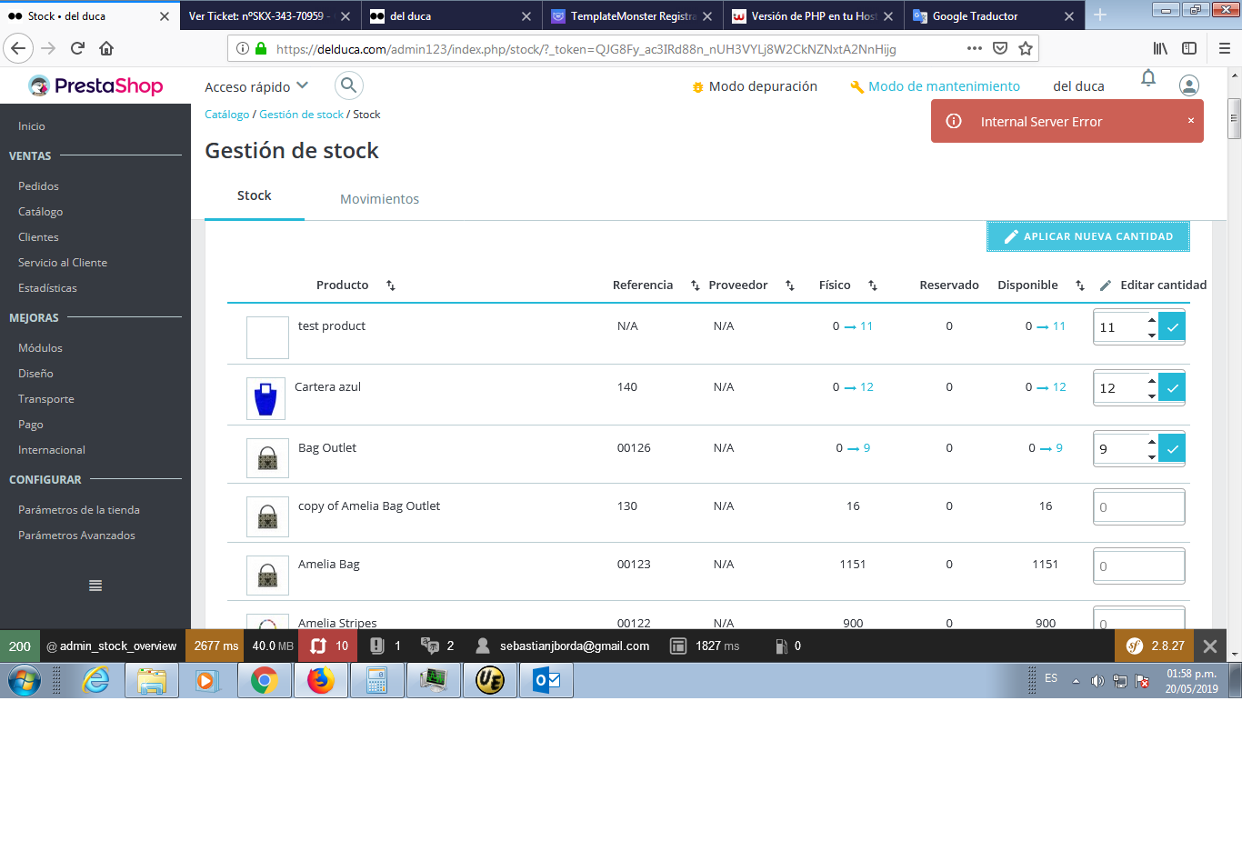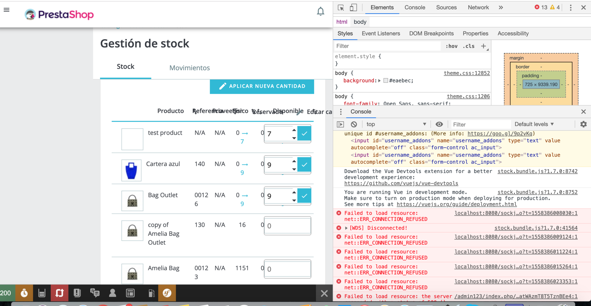 Sebastian04 Posted May 17, 2019 Share Posted May 17, 2019 Hola, cargo productos nuevos y al colocarles el stock solo deja el stock cargado de un producto, el resto lo elimina!! No pasa lo mismo cuando modifico el stock de productos que vienen por defecto en la plantilla prestashop. El soporte de la plantilla me dice que es un problema de prestashop. Necesito ayuda por favor, sino no puedo implementar mi web. Estoy cargando el stock como muestran las imágenes.Adjunto las imágenes paso a paso.1-actualización de stock en 4 nuevos productos.2-clic en el botón "Aplicar nueva cantidad"3-El stock fue actualizado.4-Re-ingresar en la gestión de stock5-Solo hay un producto con stock! Adjunto imagenes del problema. Muchas gracias!!! Link to comment Share on other sites More sharing options...