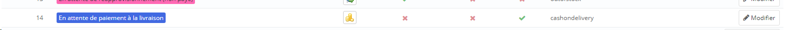 Eolia Posted May 19, 2019 Share Posted May 19, 2019 Normalement ce module affecte ce statut: Qui ne considère pas la commande comme validée A vérifier donc Link to comment Share on other sites More sharing options...
