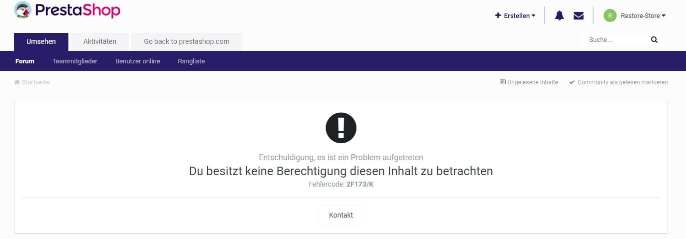 Restore-Store Posted May 21, 2019 Share Posted May 21, 2019 Hallo liebe PrestaShop Gemeinde, ich habe jüngst mein PS auf 1.6.1.24 gebracht und wollte ein wenig bei den Modulen aufräumen. Jetzt treffe ich wieder auf das altbekannte Thema mit dem Cacheproblem im Advanced EU Compliance Modul. Okay, das hat jetzt nichts mit dem o.g. Thema zu tun, dazu komme ich aber jetzt.In dem Demoshop von @Whiley ist die AEUC von @eleazar installiert. Ich habe krampfhaft versucht diese Version zu finden und bei mir ebenfalls zu installieren. Alle Suchergebnisse im Netz führen hier ins Forum, leider werden mir aber Anhänge im Forum nicht angezeigt. Es heißt immer wieder ich habe keine Berechtigung. Muss mich erst ein Admin dafür freischalten oder muss ich eine bestimmte Anzahl an Beiträgen aufweisen? In den Forenregeln konnte ich so nichts dazu finden. Link to comment Share on other sites More sharing options...