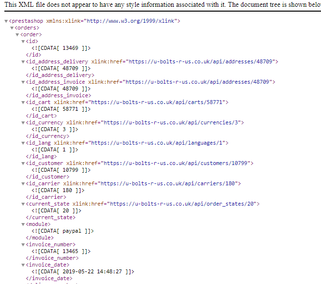 Guest Posted May 22, 2019 Share Posted May 22, 2019 Pulling what is left of my hair out here Webserice used to work fine with our courier system (Parcelforce) but has stopped. Courier system developers say there is nothing wrong at their end. To show this, the installed their own version of Prestashop and used the webservice to pull down orders into their system. The produced the attached csv file to show that it works Now from my side. If I go to domain.com/api and enter the key get access to the api. And if i use domain.com//api/orders?filter%5Bcurrent_state%5D=%5B20%5D&filter%5Bdate_add%5D=%3E%5B2019-05-20+22%3A00%3A00%5D&display=full&date=1&sendemail=1 I can see the full xml data as shown in screen print - so I KNOW the webservice works. and i KNOW the courier system works, but SOMETHING must be blocking the two from talking to each other Ourr access logs show these lines when the courier tries to get the orders from the webservice (nothing in their logs) 78.153.247.199 - - [22/May/2019:22:01:44 +0100] "GET /api/orders?filter%5Breference%5D=00000000&display=full&sendemail=1 HTTP/1.1" 200 124 "-" "Zend_Http_Client" 78.153.247.199 - - [22/May/2019:22:01:52 +0100] "GET /api/orders?filter%5Bcurrent_state%5D=%5B20%5D&filter%5Bdate_add%5D=%3E%5B2019-05-20+22%3A00%3A00%5D&display=full&date=1&sendemail=1 HTTP/1.1" 200 3622 "-" "Zend_Http_Client" And sometimes 78.153.247.199 - - [22/May/2019:13:02:41 +0100] "GET /api/order_states?display=%5Bid%2Cname%5D HTTP/1.1" 200 504 "-" "Zend_Http_Client" 78.153.247.199 - - [22/May/2019:13:02:41 +0100] "GET /api/orders?filter%5Bcurrent_state%5D=%5B1%7C2%7C3%7C8%7C9%7C10%7C11%7C12%7C13%7C14%7C18%7C19%7C20%5D&filter%5Bdate_add%5D=%3E%5B2019-05-02+22%3A00%3A00%5D&display=full&date=1&sendemail=1 HTTP/1.1" 200 3718 "-" "Zend_Http_Client" Which shows they are trying to connect. I go to that link and I can see the data. So what on earth is happening . Is this a clue?? HTTP/1.1" 200 3622 "-" "Zend_Http_Client" Not sure what 3622 (or the 506 and 3718) refers to Phpinfo file if it helps: http://u-bolts-r-us.co.uk/phpinfo.php Is there anyone who can help track down the issue? WDMPATC_20190522_eorder_logs.csv Link to comment Share on other sites More sharing options...