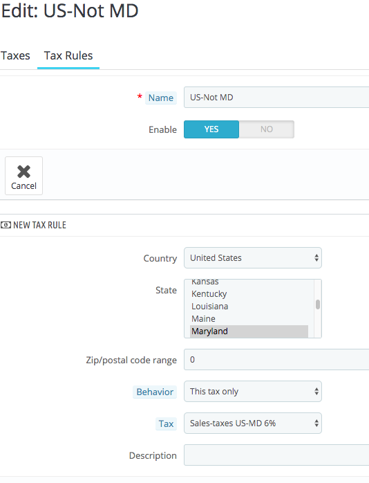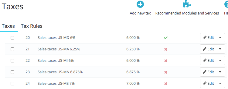 kdash1228 Posted May 23, 2019 Share Posted May 23, 2019 Is there any documentation available that explains how to properly the settings for taxes? I am using PS v1.7.3.1 and am having a problem troubleshooting an issue with sales tax showing up for guests without them entering their delivery address. I only need to collect tax for one state (Maryland). I've attached some of my settings if anyone immediately sees something that needs to be changed. Link to comment Share on other sites More sharing options...