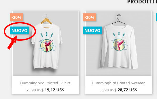 modificare la scritta nuovo ecc nel prodotto