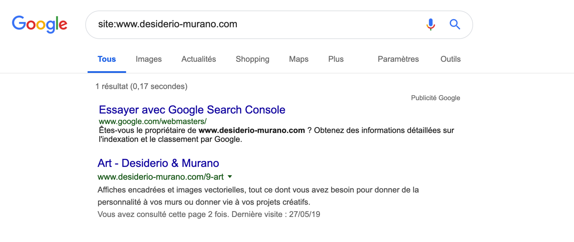 Damien Frinquello Posted May 27, 2019 Share Posted May 27, 2019 Hello, I am looking for help. My website is not visible at all on Google (www.desiderio-murano.com); I have checked using "site:desiderio-murano.com" and I can see that only one page (old one) is indexed. I don't know what to do, I have fulfilled all meta datas but maybe I have missed or enable something... Could you please help ? Thanks! Link to comment Share on other sites More sharing options...