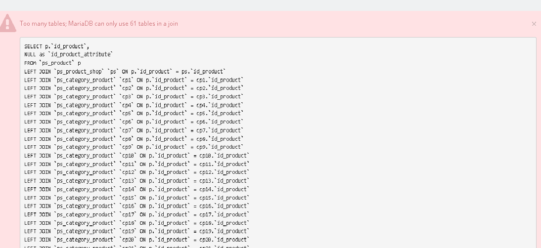 musicmaster Posted June 2, 2019 Share Posted June 2, 2019 I have never seen such code before. So there is a good chance that it is in some obscure module that only you and a few other people have. It might help when you mention your Prestashop version. Next questions: when did it start? Did you do something special then - like installing a new module? And can you get rid of it by uninstalling or deleting a module? If that doesn't help you need to find the query. For that purpose it might help to switch on profiling. Link to comment Share on other sites More sharing options...