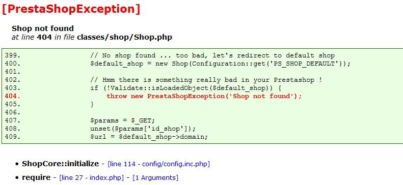 En mode debug j'ai le message qui est en pièce jointe. "Shop not found".