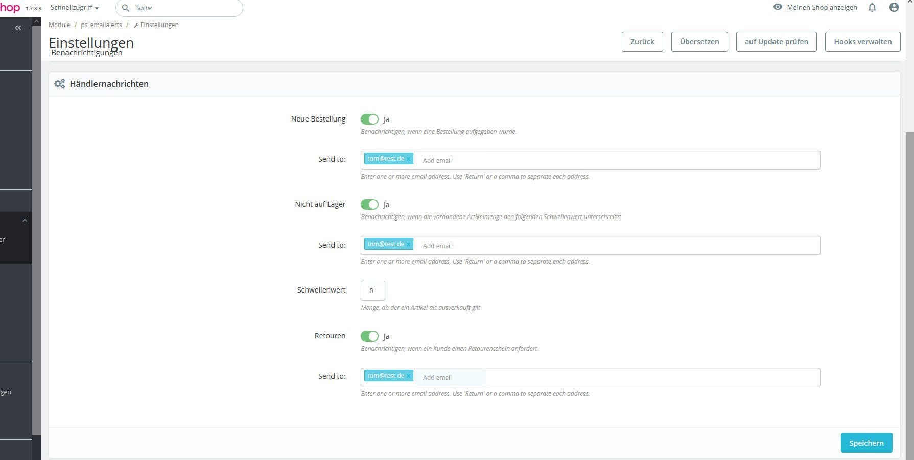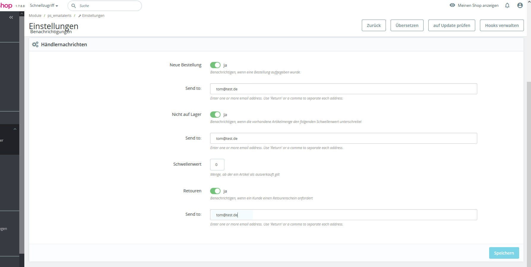 Gummiwutzel Posted April 13, 2023 Share Posted April 13, 2023 Ich litt schon seit mehreren Wochen unter diesem Problem und wusste mir inzwischen echt keinen Rat mehr. Die hier gegebenen Tipps hatten bei mir leider keinen Erfolg (das Verzeichnis "/modules/mailalerts/mail" heißt bei mir (PS 1.7.8.8) übrigens "/modules/ps_emailalerts/mail"...). Und dabei habe ich zwei nahezu identische Shops auf meinem Server, wo die Bestellbestätigungen von dem einen Shop kamen, vom anderen aber nicht. Eigentlich hervorragende Bedingungen, um einen Fehler zu finden. Aber ich konnte machen was ich wollte, ich fand den Unterschied zwischen beiden Shops einfach nicht. Nach rund 6 Stunden Vollzeitsuche und Dateivergleichen war die Ursache des Problems dann so extrem popelig, dass ich es kaum glauben konnte: Ursache war in der Tat das Modul "Benachrichtigungen", welches im Verzeichnis unter "ps_emailalerts" haust. Zur normalen Konfiguration geht man im Backend auf "Module", sucht dort das Modul "Benachrichtigungen" und geht dort auf "Einstellungen". Es öffnete sich bei mir das folgende Fenster (heruntergescrollt): Es fällt auf, dass hier gar keine eMail-Adressen eingetragen sind. Also eintragen: Kein Problem: eMail-Adressen eintragen und unten auf "Speichern" klicken. Nur blöd, dass dann dieses hier erscheint: Was soll das?? Man trägt die eMail-Adressen ein, klickt auf "Speichern" und bekommt dann diese Fehlermeldung. Ich bin ja schon ein paar Tage dabei, so dass ich es wohl noch schaffen werde, drei eMail-Adressen einzutragen. Oder bin ich dafür schon zu blöd? Sechs Stunden später hatte ich das Rätsel dann gelöst: Man muss nach Eingabe der eMail-Adresse jedesmal die Enter-Taste drücken, damit das Script die eMail-Adresse übernimmt und ERST DANN auf "Speichern" klicken. HALLELULJA!!! Dann sieht es so aus, und das Problem ist beseitigt. Oh - Mein - Gott! Grüße, Tom Link to comment Share on other sites More sharing options...