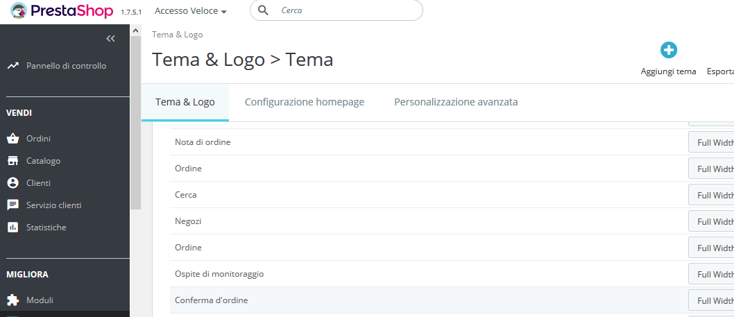 ho un problema su una nuova installazione della v. 1.7.5.1, sul sito online (backoffice) sotto il menu Design / Tema & Logo / Scegli layout mancano le voci relative alle pagine product, category e cms.