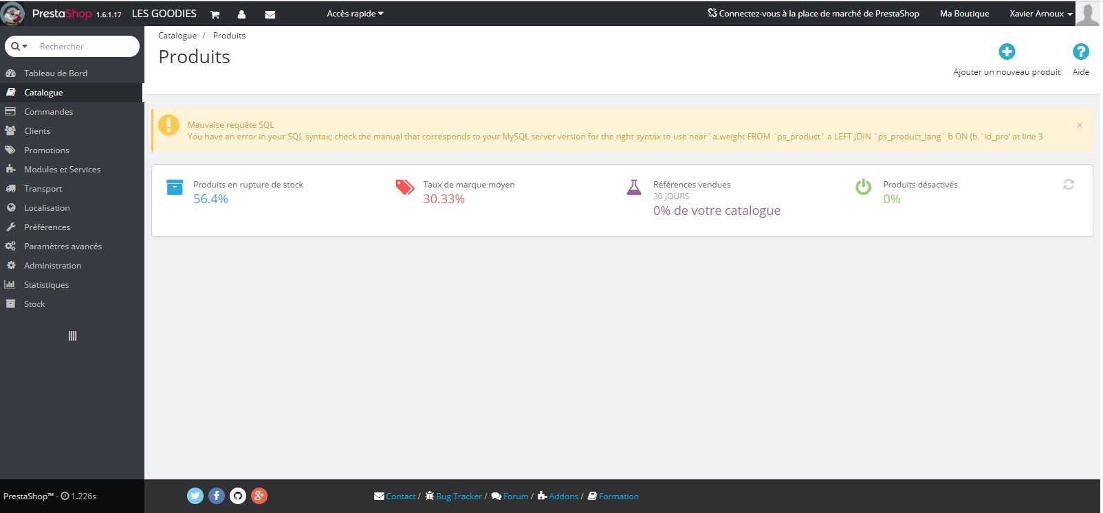 xarnoux Posted June 14, 2019 Share Posted June 14, 2019 Bonjour, je viens d'être confronté à ce problème sans savoir pourquoi. Impossible d'accéder à la page catalogue/produits dans le back office. Voir l'image pour connaître l'erreur et peut être m'éclairer. Merci par avance, Xavier Link to comment Share on other sites More sharing options...