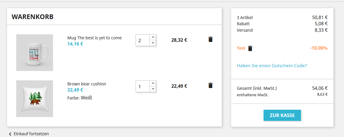 rictools Posted June 24, 2019 Share Posted June 24, 2019 Daß die produktübergreifenden Rabatte nicht auf der Produktseite, sondern erst im Warenkorb angezeigt werden, ist in 1.6 auch so, aber du kannst natürlich in die Kurzbeschreibung einen entsprechenden Infotext aufnehmen (und auch in die Kategoriebeschreibung bzw. die Seite zum betreffenden Hersteller). Geschickt wäre es natürlich, wenn der Shop nachschauen würde, ob sich bereits einer der betreffenden Artikel im Warenkorb befindet und dann den Rabatt direkt beim Preis auf der Artikelseite angeben würde, ob es ein Modul gibt, das das ermöglicht, weiß ich nicht, das ist halt zumindest eine fortgeschrittene Funktion, die man von einem kostenlosen Shopsystem nicht erwarten kann, evtl. wäre dazu eine individuelle Programmierung erforderlich. Das mit den "unterschiedlichen Preisen" verstehe ich jetzt nicht so ganz, wie ist denn das Verhalten und wie sollte es sein? Link to comment Share on other sites More sharing options...