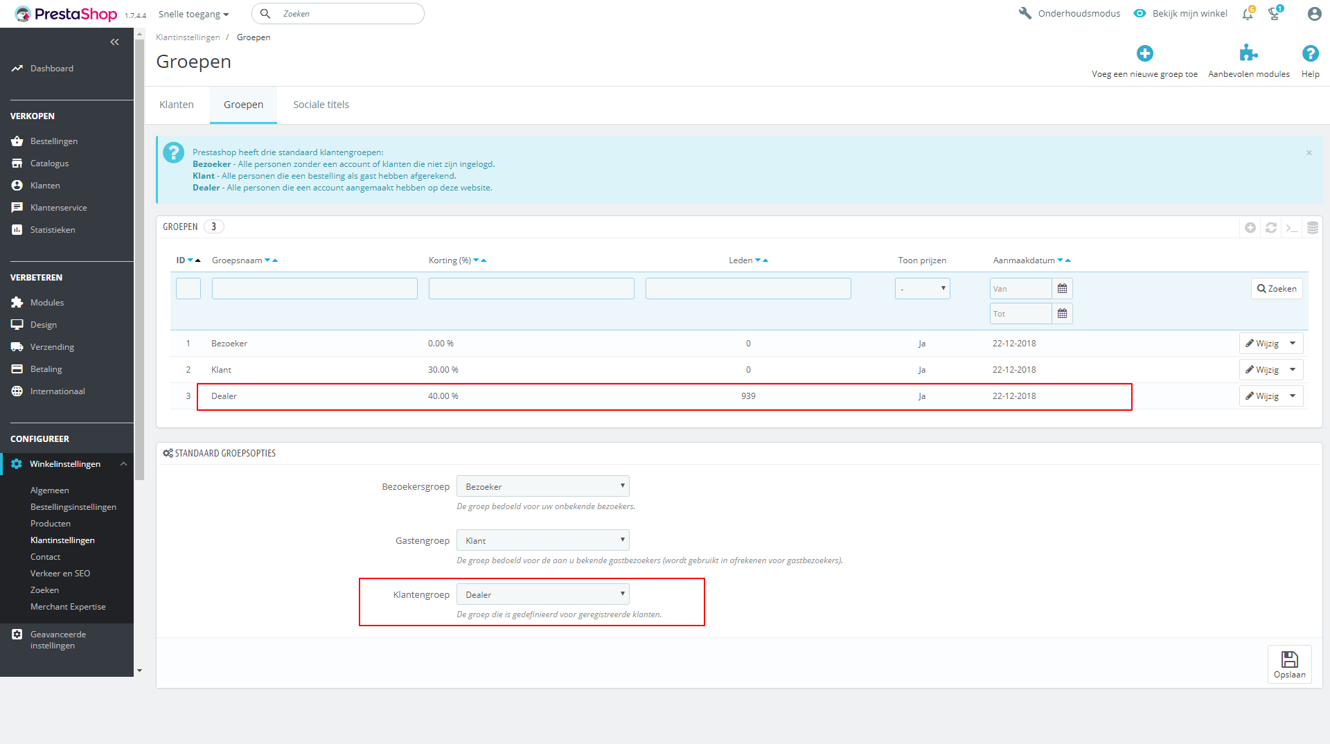 Adeko.nl Posted June 19, 2019 Share Posted June 19, 2019 Hi Hartung, Heb je al naar de standaard groepsopties gekeken of deze goed staan? Dit kun je vinden in de backoffice onder Winkelinstellingen -> Klantinstellingen -> Groepen Link to comment Share on other sites More sharing options...