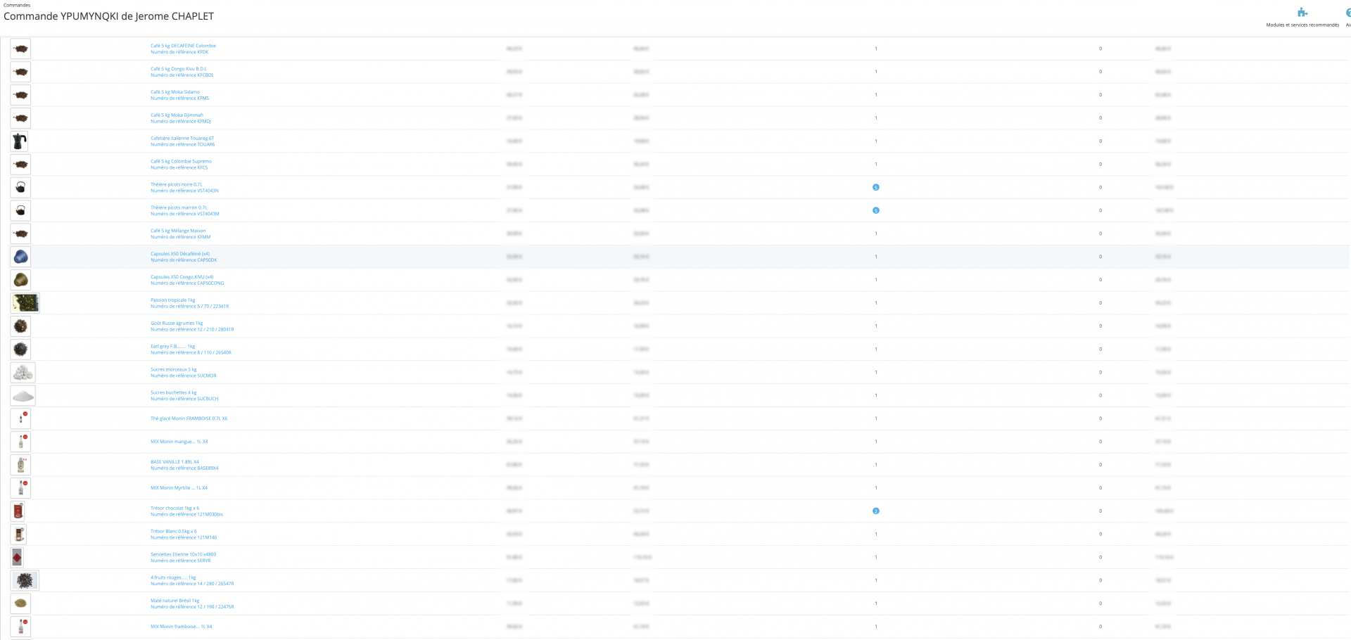 EtienneCoffeeShop Posted June 27, 2019 Share Posted June 27, 2019 Bonjour à tous, Nous avons une interface BtoB pour nos franchisés. Ces derniers passent chaque semaine des commandes pour leur point de vente. Une fois que ces franchisés ont effectué leurs commandes, nous les imprimons pour les préparateurs de commandes. Le problème est que nos produits sur le bon de commande sont triés par ordre de saisie et de mise en panier et non par famille de produits, ce qui serait plus facile pour nos préparateurs de commandes. Est-ce que quelqu'un a déjà eu ce soucis ??? Je pense que ce n'ai juste qu'une histoire de script qui par défaut tri par ordre chronologique... ça ne doit pas être très compliqué mais mes notions de développeurs ne sont pas assez développées Merci pour votre aide Bonne journée à tous, Link to comment Share on other sites More sharing options...
