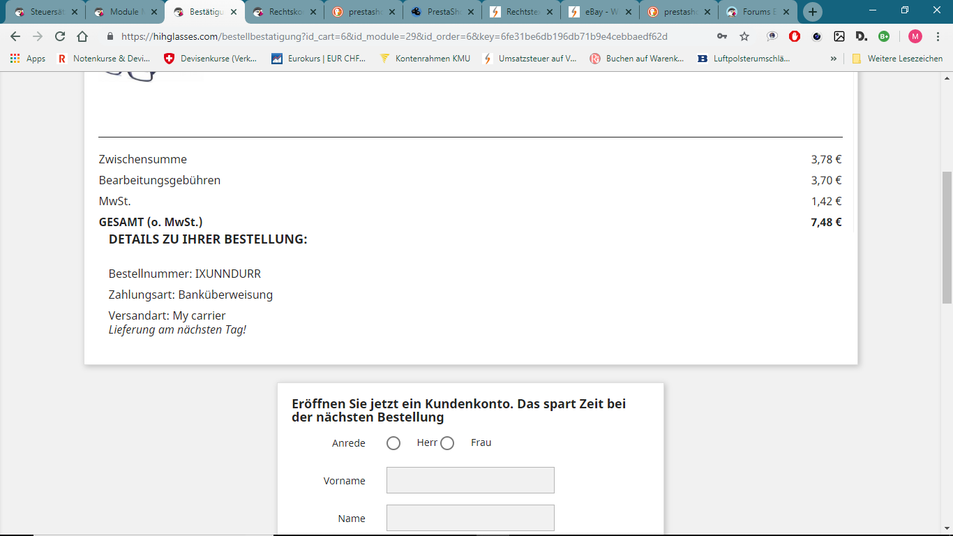 Max Honig Posted June 28, 2019 Share Posted June 28, 2019 (edited) Hallo liebe Community, ich beschäftige mich jetzt seit " einem Tag " mit Prestashop 1.7 , es klappt eigentlich auch alles ganz gut. Doch nun ist mir aufgefallen, das in der Bestellübersicht der Gesamtbetrag ohne MwSt. angezeigt wird. Auf meinem Smartphone wird der Korrekte Preis inkl. MWST ausgegeben, woran könnte das liegen Ich wäre euch sehr dankbar, wenn ihr mir dabei ein wenig behilflich sein könnt. vielen Dank Marcel Edited June 30, 2019 by Max Honig (see edit history) Link to comment Share on other sites More sharing options...