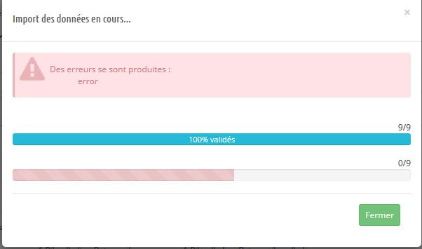 J'obtiens cette fenêtre à chaque fois voir fichier joint et fichier CSVCategoriesProduitsFrPrestashopReq.xlsx