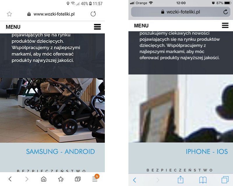 Sklep poprawnie wyświetla się na wszystkich urządzeniach oprócz urządzeń firmy Apple. Sprawdzając na stronie mobilnie.com.pl również wyświetla się prawidłowo, natomiast sprawdzone na trzech różnych iphonach (6,7 i 8 ) wygląda jakby nie dopasowywał wielkości zdjęć do wielkości ekranu. Będę wdzięczny za sugestie gdzie może leżeć problem.