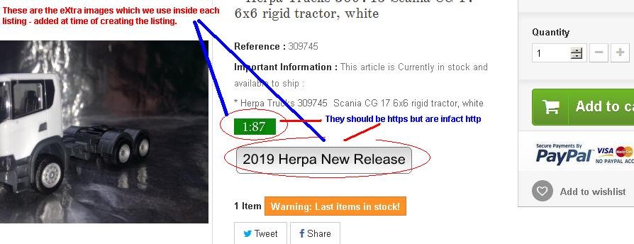 KGI Posted July 3, 2019 Share Posted July 3, 2019 (edited) Hi fellow PS users. We have two PS site which are giving the same problem. We installed an SLL certificate on each of the two sites. We enabled SSL saved and then enabled SSL on all pages. Https and the padlock works just as it should until we navigate to various products on either of the sites. we have found that the *not secure* parts of the pages such as images are not secure warning is now shown. After very careful searching we found that the prestashop default theme seems to have a bug in it, where as when you create a new Product listing any image that is loading into the body of the text of the listing (not main images) is not being shown as https but only in http. However, by removing the image and recreating the image it is then saved as a https and there ends the problem. However, as we have several hundred products it is far to much work to change each listing. So the question is - if all pages are set (and have been set to) SSL why is the standard default theme not changing these small added images to https and does any one know how to fix this bug. As far as I can tell everyone who uses this extra facility will have the same issue. I await and fingers crossed that somebody on here or from PS can solve this little issue. thank you in advance Sebastian edit: the location of the image is thus held in the img/cms folder and it is this fold that is not being forced to go https !! http://www.mdrdirect.co.uk/img/cms/1-87.bmp Edited July 3, 2019 by KGI added the folder data which is the issue and extra image (see edit history) Link to comment Share on other sites More sharing options...