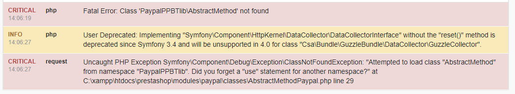 Cbo Posted July 5, 2019 Share Posted July 5, 2019 Hello, I installed the PayPal module to configure it but it didn't worked and created a bug. When I try to get to the modules & services page, I get an error 500. So, I activated the debug module and I got this result: The line of code that doesn't work is Unfortunately I am not very good at coding so I was wondering if one of you could help me solve this issue? Thanks, Link to comment Share on other sites More sharing options...